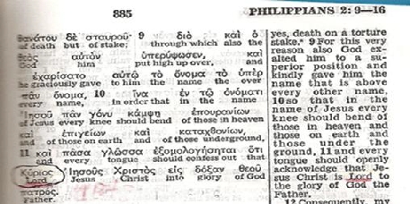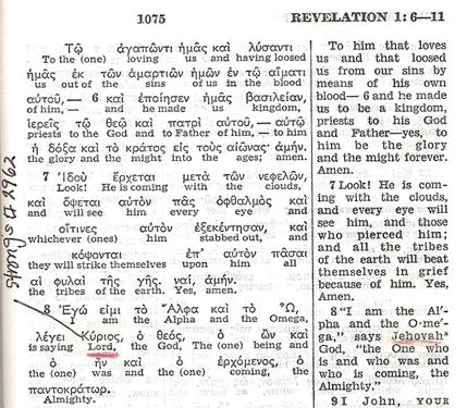 Fred, if Kurios should be translated “Jehovah” (by the way that’s fine with me) in Rev. 1:8, then it should be translated “Jehovah” in Phil. 2:11 also, but WT leaders would not do that because it would compromise their position that Jesus is not Jehovah. So let's put Jehovah in Phil 2:11, for this is really what is going to happen on judgment day: